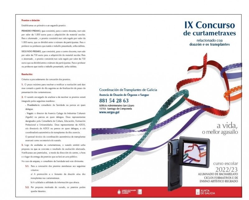 IX concurso de curtametraxes relacionado coa doazón e os transplantes: Curso escolar 2022/23 (tríptico)Datos