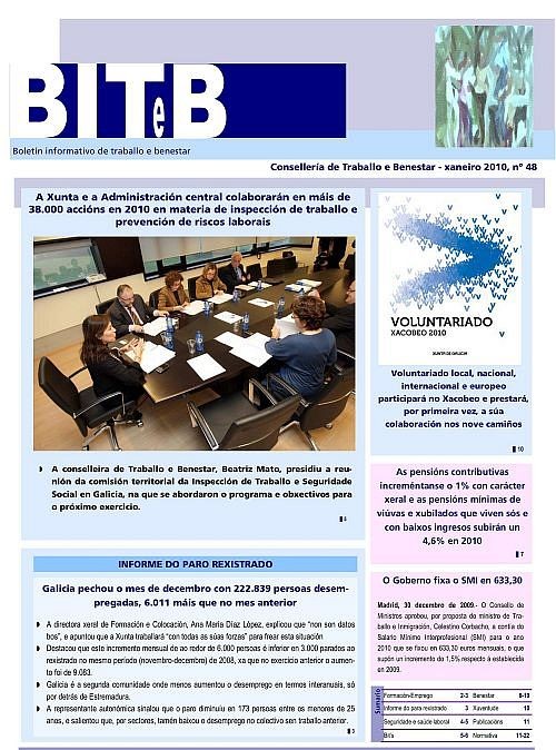 Publicación periódica mensual na que se recollen novas sobre as actuacións máis salientables da Xunta de Galicia nos eidos laboral e do benestar. Acompaña á publicación unha recompilación normativa de lexislación relacionada con estes ámbitos de carácter autonómico (DOG e diarios das restantes comunidades autónomas), estatal (BOE) e comunitario (DOUE). Tamén se dá unha relación das publicacións editadas en rede cos seus enlaces para a súa descarga.