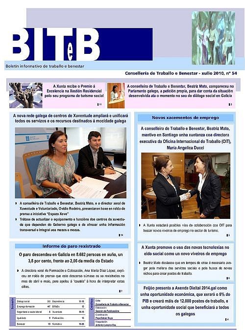 ublicación periódica mensual na que se recollen novas sobre as actuacións máis salientables da Xunta de Galicia nos eidos laboral e do benestar no ano 2009. Acompaña á publicación unha recompilación normativa de lexislación relacionada con estes ámbitos de carácter autonómico (DOG e diarios oficiais das restantes comunidades autónomas), estatal (BOE) e comunitario (DOUE).