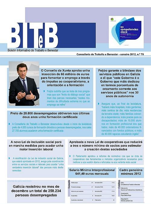 Publicación periódica mensual na que se recollen novas sobre as actuacións máis salientables da Xunta de Galicia nos eidos laboral e do benestar. Acompaña á publicación unha recompilación normativa de lexislación relacionada con estes ámbitos de carácter autonómico (DOG e diarios das restantes comunidades autónomas), estatal (BOE) e comunitario (DOUE). Tamén se dá unha relación das publicacións editadas en rede cos seus enlaces para a súa descarga.