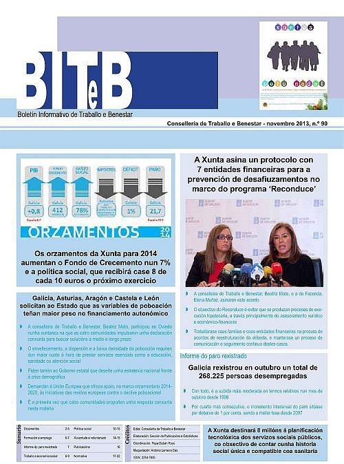 Publicación periódica mensual na que se recollen novas sobre as actuacións máis salientables da Xunta de Galicia nos eidos laboral e do benestar. Acompaña á publicación unha recompilación normativa de lexislación relacionada con estes ámbitos de carácter autonómico (DOG e diarios das restantes comunidades autónomas), estatal (BOE) e comunitario (DOUE). Tamén se dá unha relación das publicacións editadas en rede cos seus enlaces para a súa descarga.