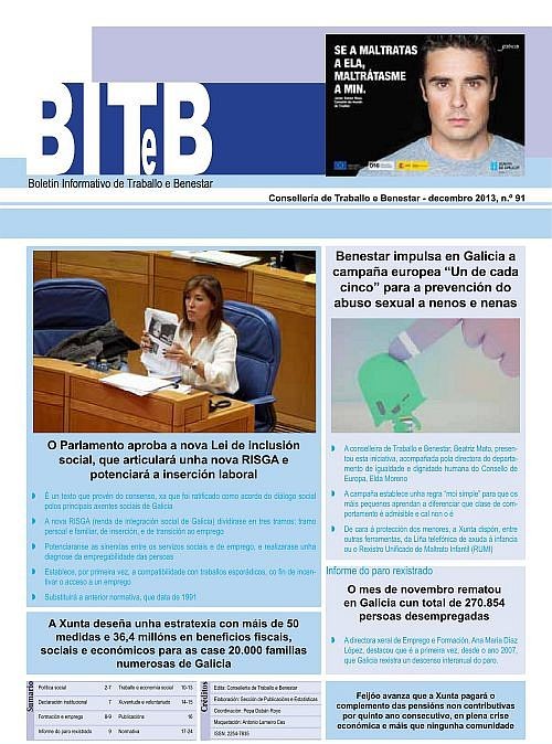 Publicación periódica mensual na que se recollen novas sobre as actuacións máis salientables da Xunta de Galicia nos eidos laboral e do benestar. Acompaña á publicación unha recompilación normativa de lexislación relacionada con estes ámbitos de carácter autonómico (DOG e diarios das restantes comunidades autónomas), estatal (BOE) e comunitario (DOUE). Tamén se dá unha relación das publicacións editadas en rede cos seus enlaces para a súa descarga.