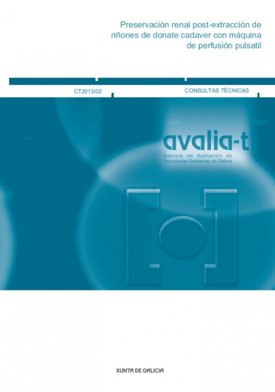 A enfermidade renal crónica é un importante problema de saúde pública pola súa elevada prevalencia, a súa importante morbi-mortalidade cardiovascular, e os custos sociais e económicos que supón. As opcións finais do tratamento son a diálise ou un trasplante de riñón, pero existe unha brecha crecente entre o número de doantes e receptores, por iso é necesario aumentar o número e calidade dos órganos trasplantados. A máquina de perfusión pulsátil pode presentar fronte a conservación en frío unha serie de ventaxas que permitan ampliar os criterios do doante e aumentar a produción de doantes de órganos falecidos.